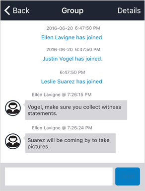 Tap the text field at the bottom of the screen, type a message, then tap Send.