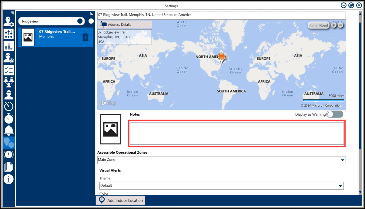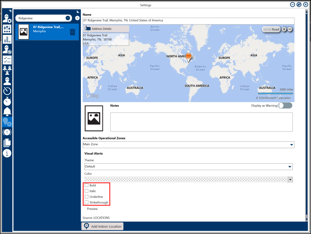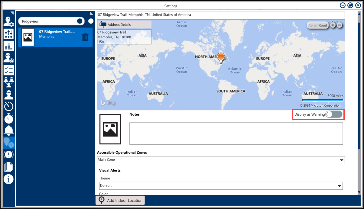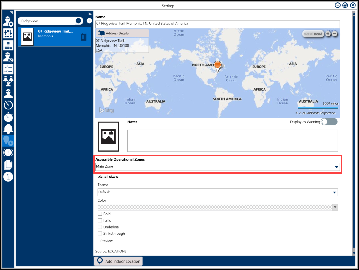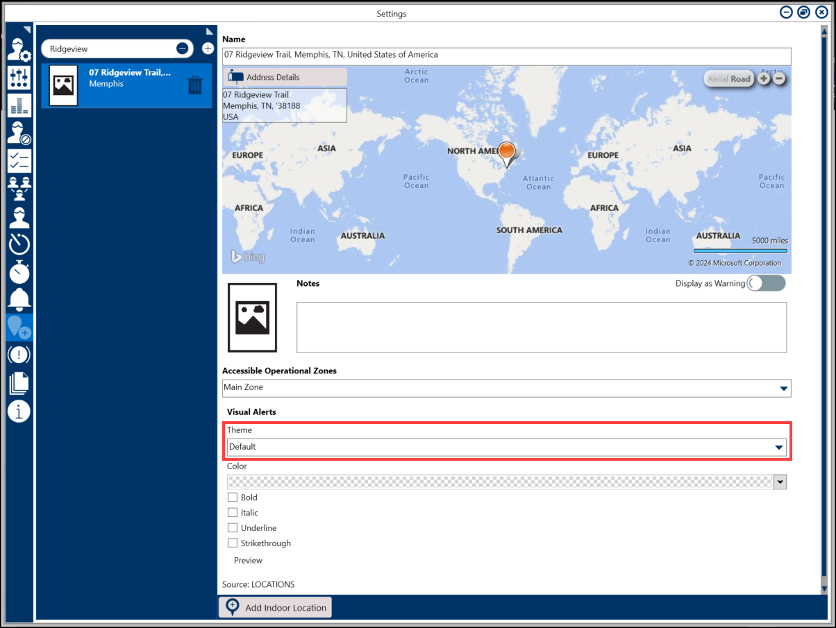 - To create a visual alert for a location, select a visual alert option from the Theme dropdown menu. Ensure the visual alert theme matches the theme selected in User Settings, otherwise you won’t be able to see your changes.