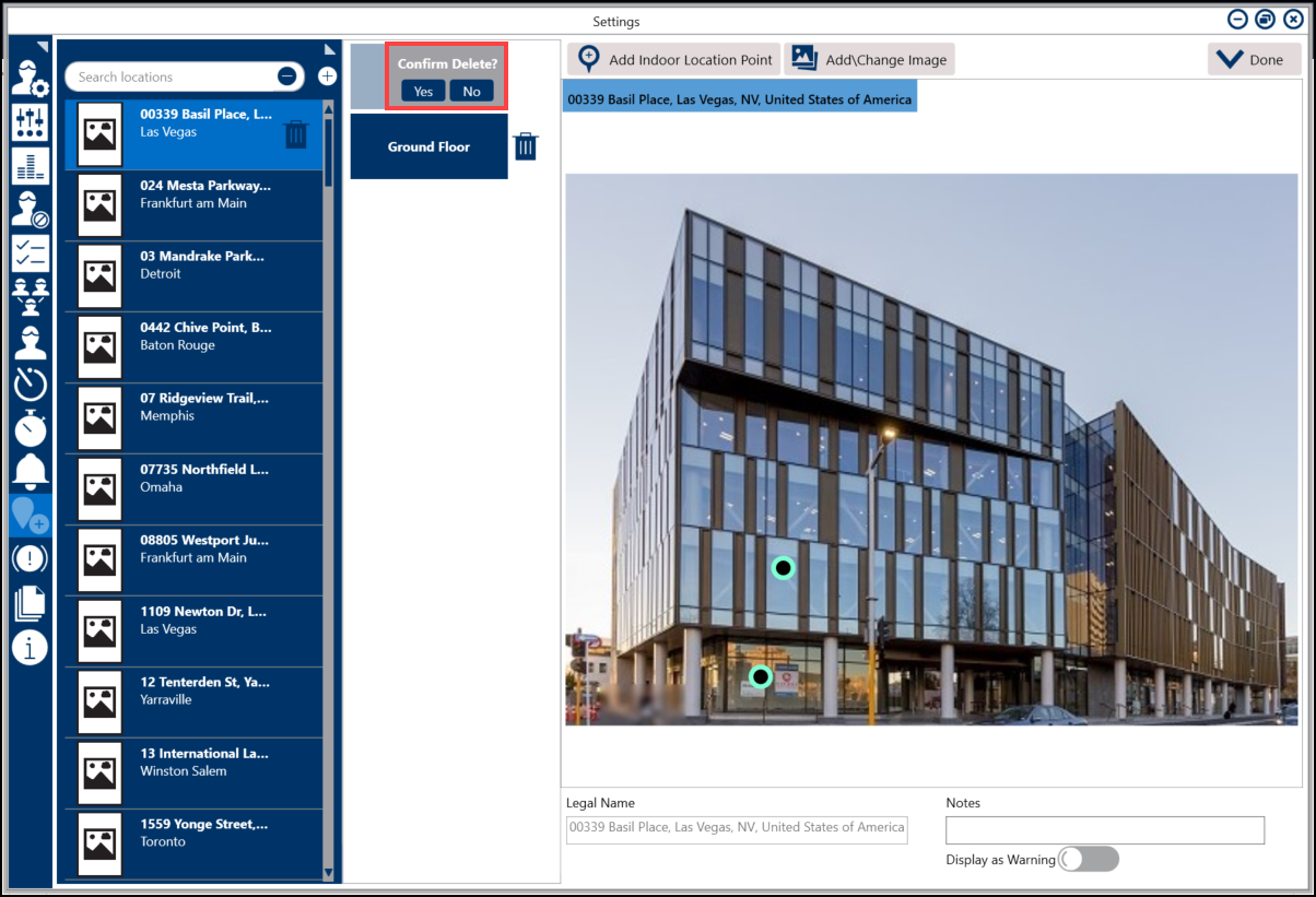 - From the Confirmation pop-up, click the Yes button to delete the indoor location point.