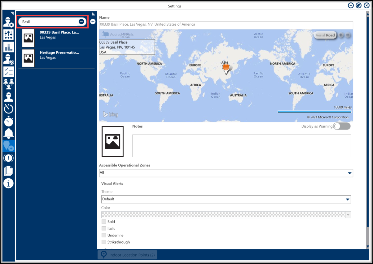 - Enter the location's name or street address in the Search field. Up to 250 locations are displayed in left-hand pane in the Locations settings. To find a specific location, use the search function.