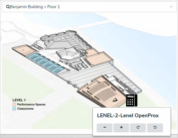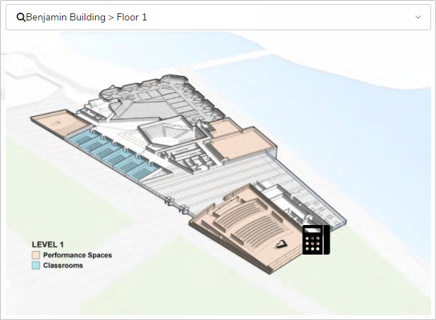 Selecting a Dispatch location to display its floorplan or map image, along with any linked and mapped devices.