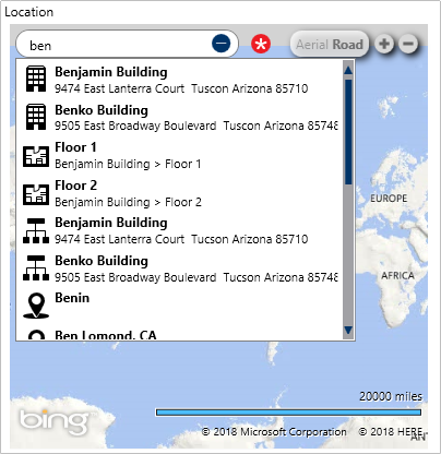 Location search results.
