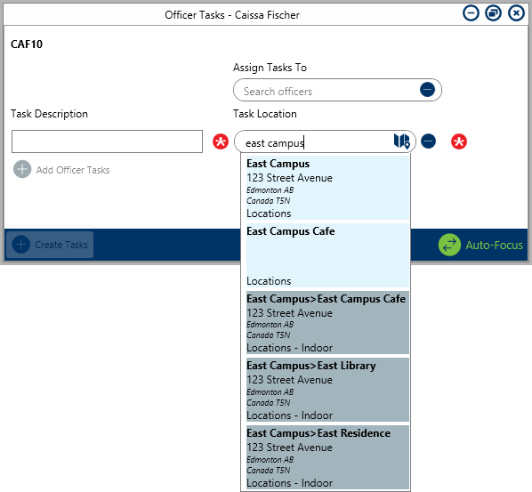 When entering search criteria for a location in the Create Dispatch, Dispatch Details, or Schedule Dispatch panels, the following will appear in the results: