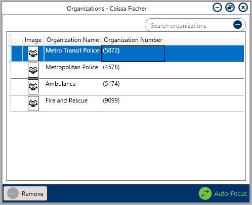 In Dispatch, an organization record is selected as an available organization, which is an agency, such as the police or fire department. Adding a record to the list of available organizations makes it possible to select it when dispatching an organization to the scene of an activity. These records are created and maintained in the Command Center app. Once created, they appear in the Organizations panel and the Dispatch an Organization options in Dispatch.