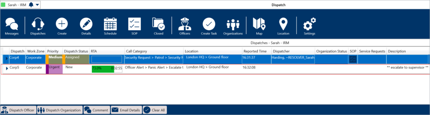 - The Dispatcher can use the Messages function to communicate directly with the Officer.