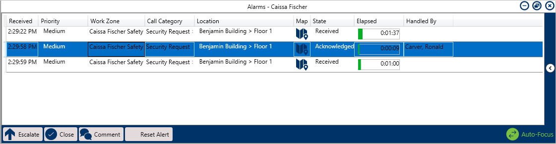 Acknowledge – Confirm receipt of the alarm.