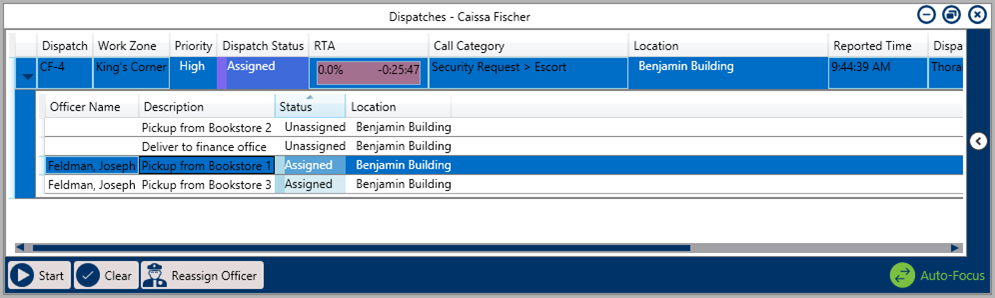 - Drag the officer’s name to the dispatch in the Dispatches panel then release.