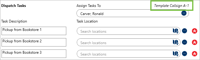 If you’re creating tasks from a dispatch template, your administrator may have selected a default call sign. When a default call sign is selected, the on-duty officer with that call sign is automatically assigned to any tasks when the dispatch is created, but this selection can be overridden if needed. If the dispatch has no tasks, the officer is automatically assigned to a Respond and assist task. If no officers with that call sign are currently on duty, you can select an officer with a different call sign.