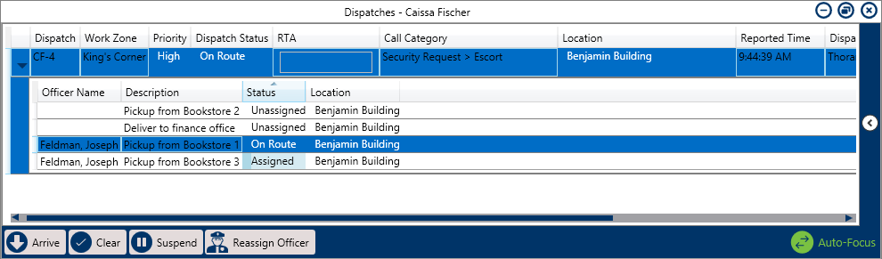 Tasks shown in the Dispatches panel after clicking the right-arrow icon.