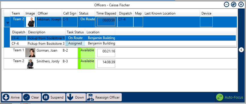 Tasks shown in the Officers panel after clicking the right-arrow icon.