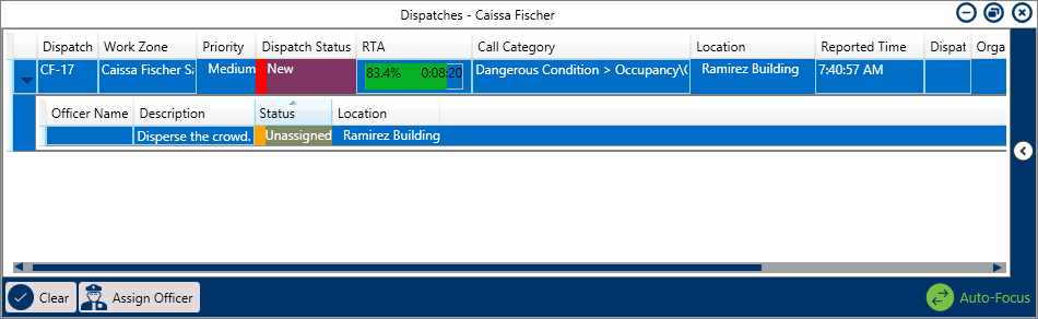 Assigning an officer means that you’re appointing an officer to complete a specific, dispatch-related job. An officer may be assigned multiple tasks, but only one of his or her assigned tasks may have an On Route or On Scene status at one time.