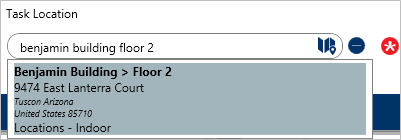 - Enter search criteria in the Task Location/Search locations field, then select the location from the search results;