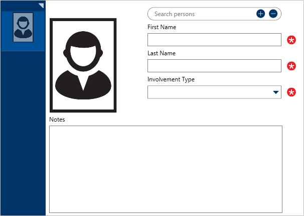 - Enter the name of the person in the First Name and Last Name fields. If you selected a previously saved record in step 4 or quick added a person record, skip this step.