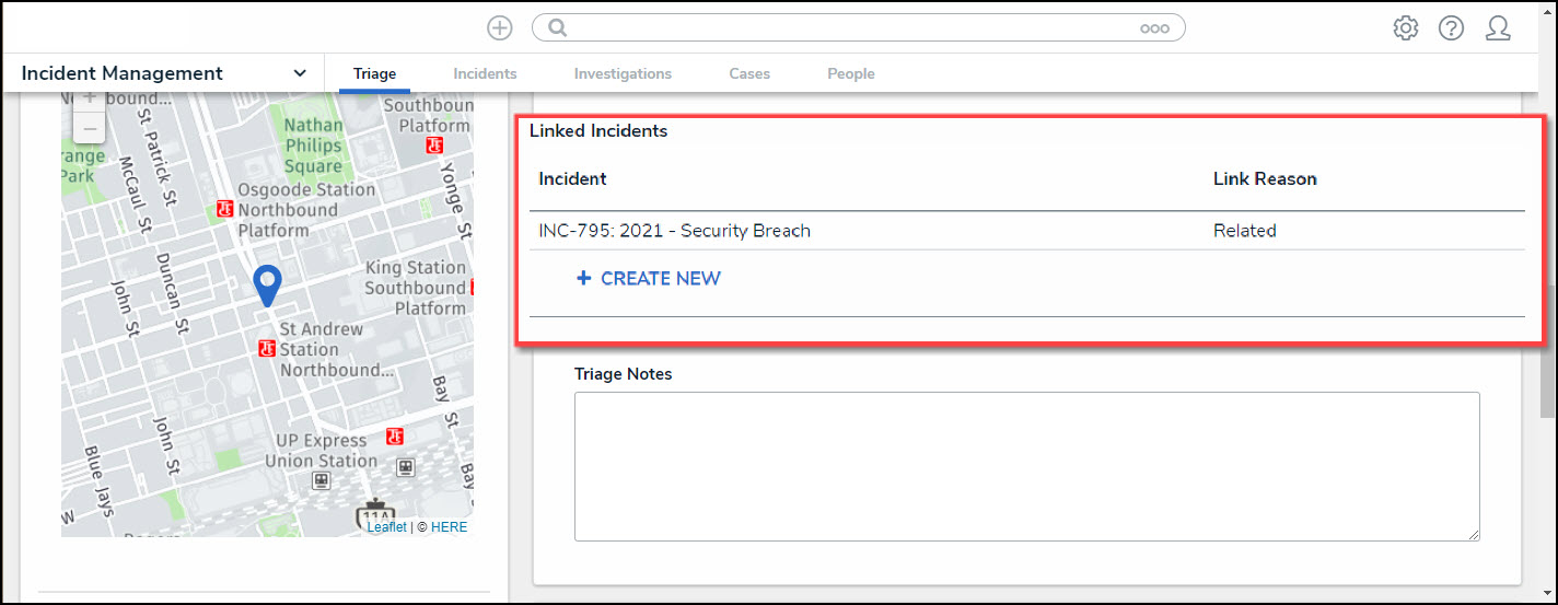 Linked Incidents Section