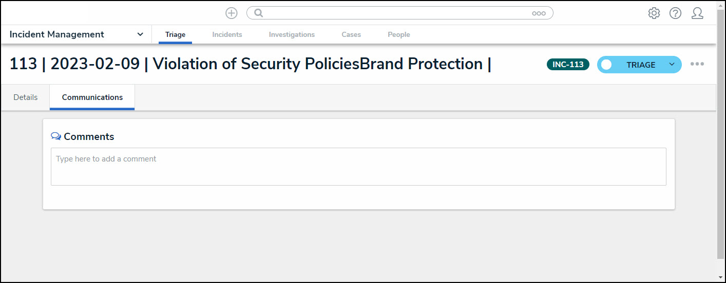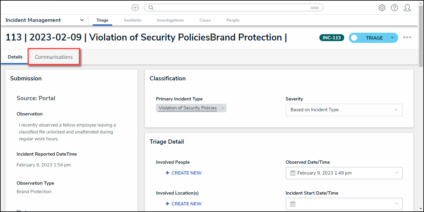 - (Optional) Depending on user permissions, click the Communications tab on the Incident Form screen.