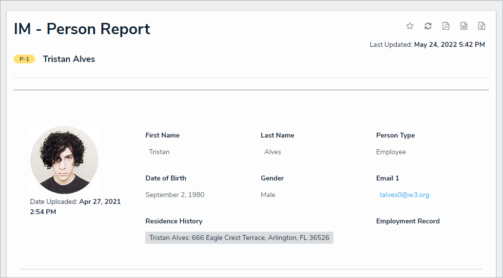 Click the Company record in the Persons of Concern section to open the IM - Person report.