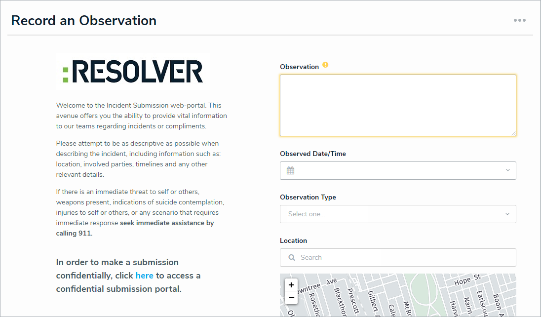 For instructions on submitting an incident, watch the attached video or follow the steps below. To submit an incident while keeping your identity confidential, review this article.