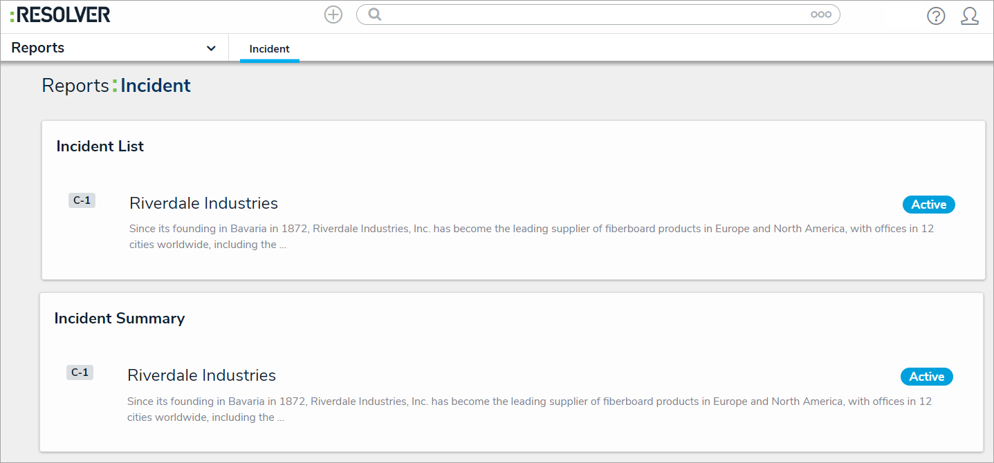 - Click the dropdown in the nav bar > Reports to display the Incident tab.