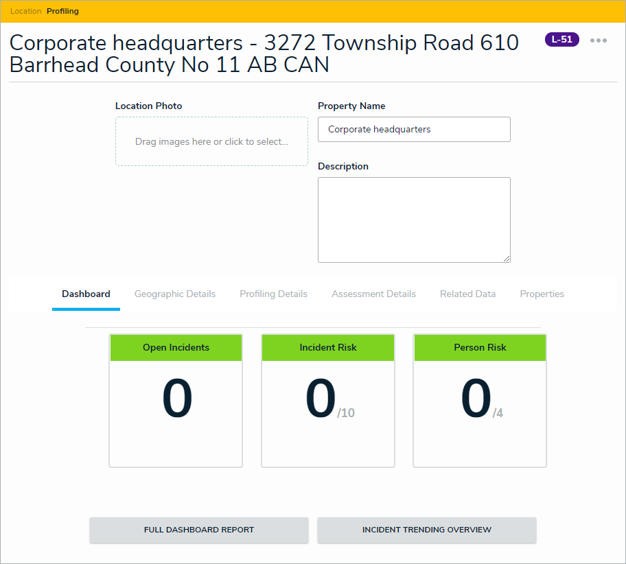 | In addition to being able to profile newly created locations, the security risk team can move an already profiled location back to the Profiling workflow state by opening the location profile and clicking Profile at the bottom of the form. |