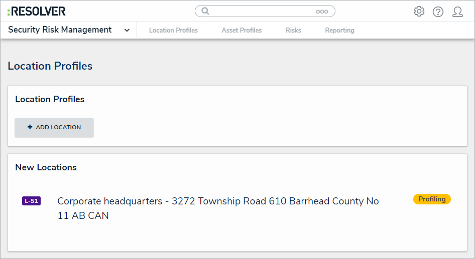 Assigned locations in need of profiling will show up in the user's My Tasks page, though they can also be accessed from the Location Profiles tab of the Security Risk Management app under New Locations.
