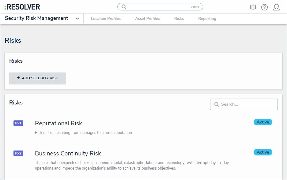 Risks represent the potential that unexpected events may have an impact on the organization. Members of the Security Risk Team user group are responsible for ensuring that all active and emerging risks are documented.