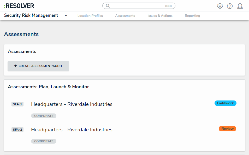- Click an assessment in the Review state to open the Fieldwork and Review form.