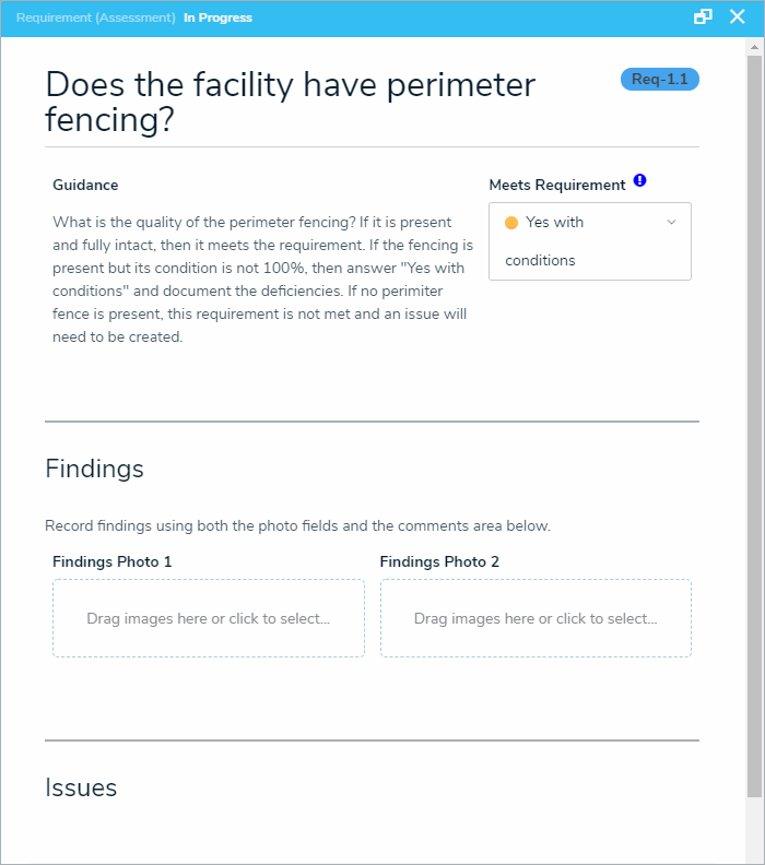 Drag an image file to or click the Findings Photo fields to add an image file to the requirement.
