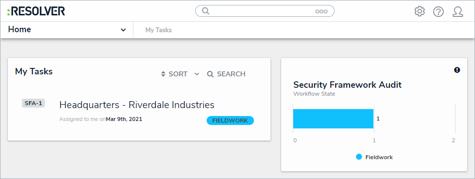 Log into a user account that's been added to the Security Audit Fieldwork user group to display the My Tasks page.