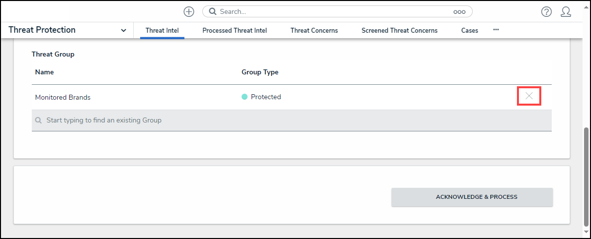 - Click the Delete (x) icon to remove the Threat Group from the Threat.